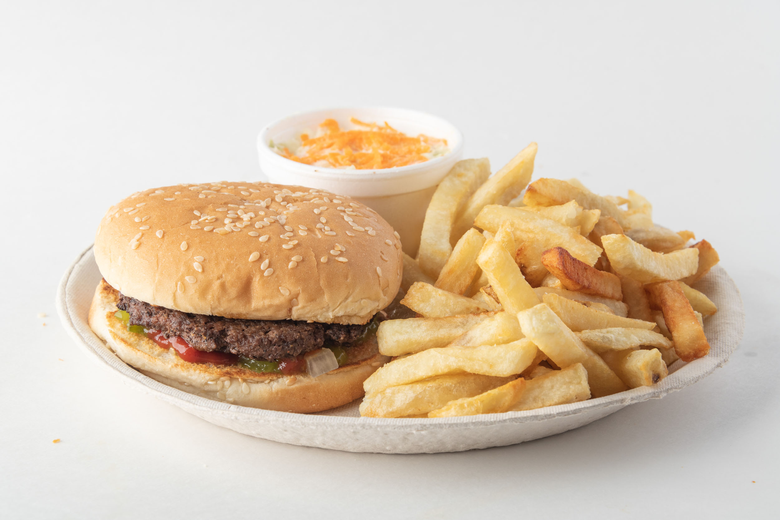 All beef patty, ketchup, mustard, relish & onions served with coleslaw & fresh-cut fries.